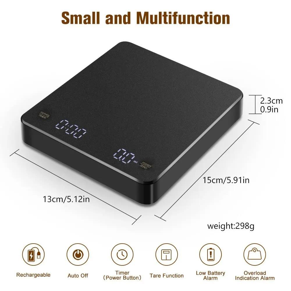 • أقصى وزن 3 + :يمكن للميزان التعامل مع أوزان تصل إلى 3 ، مما يجعله مناسبًا لقياس كميات أكبر من القهوة أو المكونات الأخرى.
